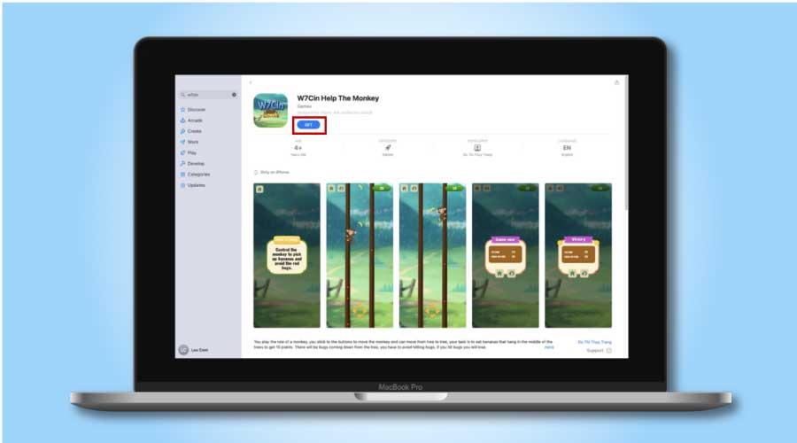 Nhưng bạn yên tâm, khi truy cấp giao diện sẽ điều hướng bạn về sever chính thức của Win79. Bạn có thể vào trực tiếp Appstore và tìm kiếm ứng dụng “W7Cin – Help The Monkey”