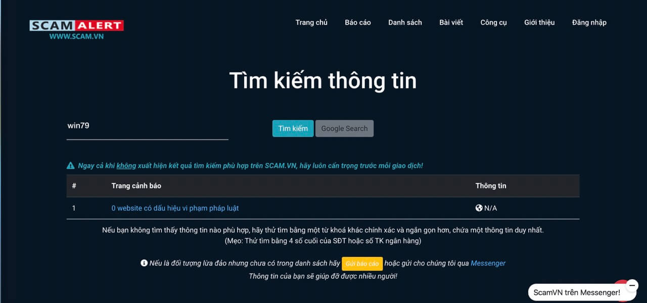 Chúng tôi đã tự kiểm chứng chất lượng của Win79 trên Scam.vn, kết quả là không có báo cáo nào lừa đảo về game bài này.
