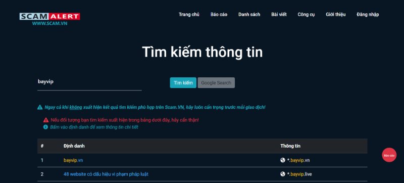 Giờ đây bất kỳ trang cá cược lừa đảo nào cũng đều bị tổng hợp vào danh sách đen. Anh em có thể truy cập website và tra cứu tên cổng game này. Tất nhiên hoàn toàn không tồn tại dữ liệu sân chơi trên hệ thống.