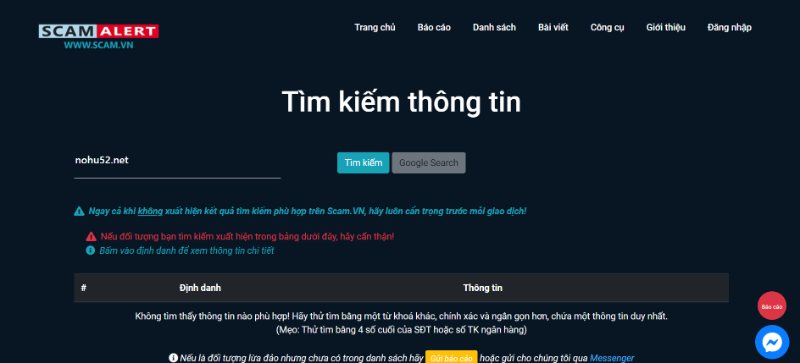 Một cách thủ công để anh em xác thực drama này là vào kiểm tra thông tin tại website chống lừa đảo. Khi nhập tên cổng game, hệ thống trang web hoàn toàn không thể nào tìm thấy.